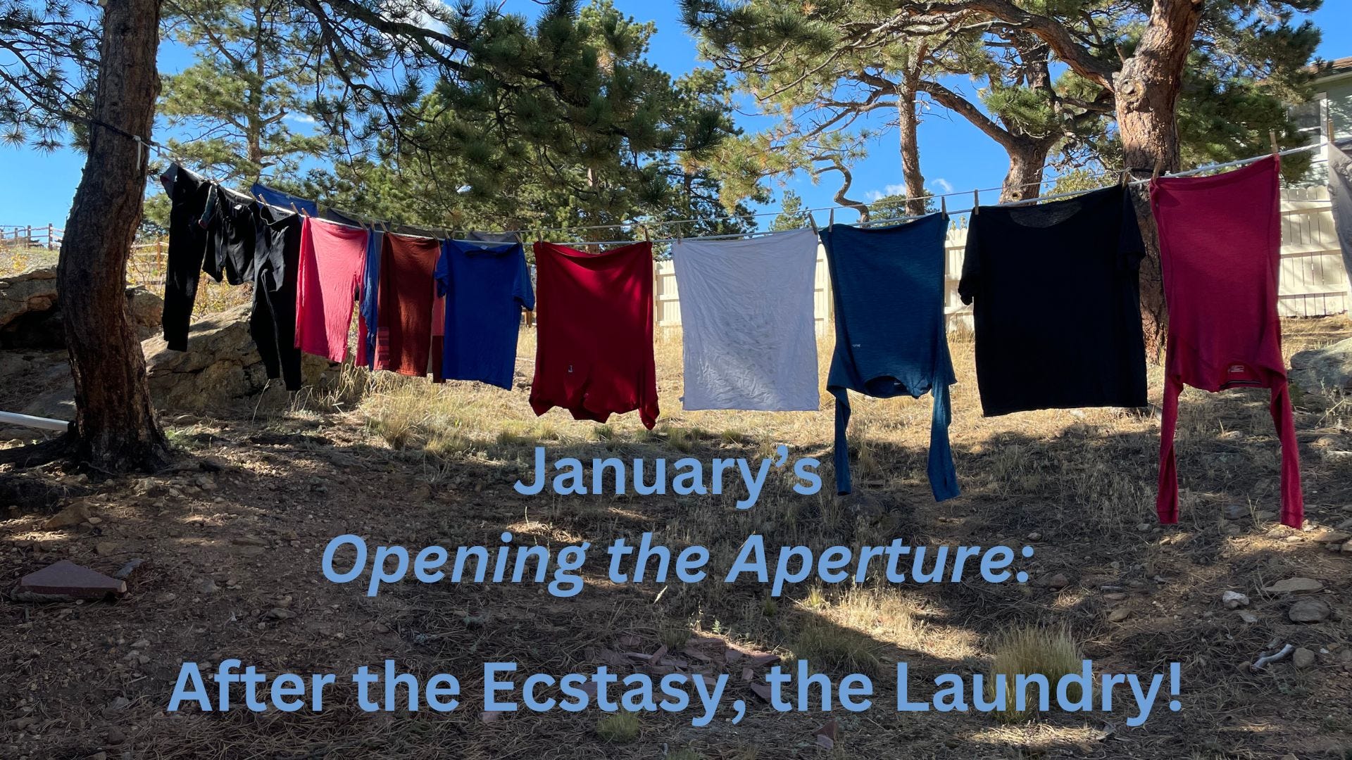 Second, back in October, we started a monthly video teaching series called “Opening the Aperture” for paid subscribers. Each month, the two of us (Ian and Elizabeth) dialogue for about 45 minutes about a different aspect of the spiritual path of surrendering to Love and connecting with Spirit that has been called ‘non-dual’ seeing or what we call living with an “open aperture.”